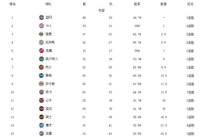 来源:24直播网04-25 16:0924直播网讯讯 NBA常规赛进行到现在,大部分球队都只剩下9-12场比赛了,这其中东部的格局已经越来越清晰了,篮网、费城和雄鹿争夺常规赛东部冠军,尼克斯和老鹰作为黑马搅局直通季后赛的前六名,而附加赛资格的席位也很明朗,猛龙和公牛掉队了,奇才强势逆袭。