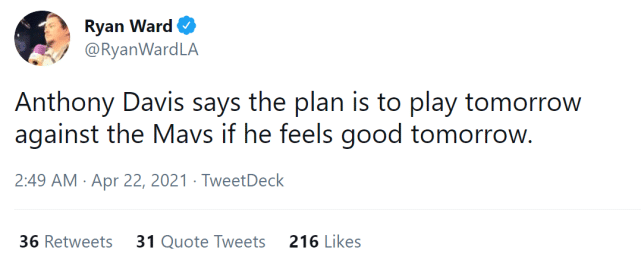 湖人新双塔首秀来了!浓眉计划明日出战独行侠,自曝曾担心跟腱撕裂
