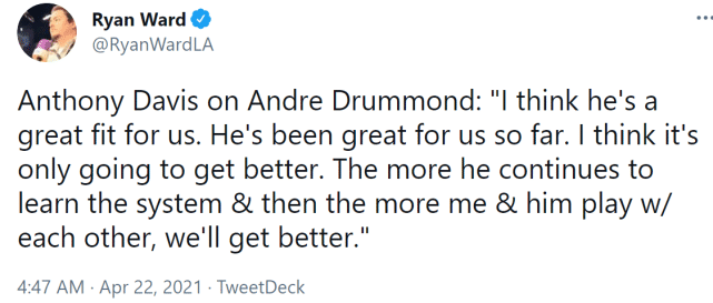 浓眉表示,现在他感觉自己的右腿已经100%恢复健康,但谈起受伤时的那一幕,依然心有余悸。浓眉说:“我从未遭遇跟腱伤病,但我当时感觉到剧烈的疼痛,就像‘撕裂’了一样,那是我从未有过的感觉。所以,当时我以为是很严重的问题,虽然最终没有我想象中那么严重,但依然是一次重伤。”