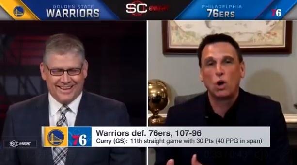 美国杨毅认为库里是历史第一进攻球员“他是人类历史上最伟大的投手,进攻端他没有值得依赖的对象,维金斯乌布雷太不稳定。他有49%的命中率,42.7%的三分命中率,可以场均30分,他可以在任何位置出手。你还不能对他犯规,因为那等于送分,他还有出色的控球,他处在另外一个级别上,这就是我们为什么叫他史上进攻最出色的球员的原因。”