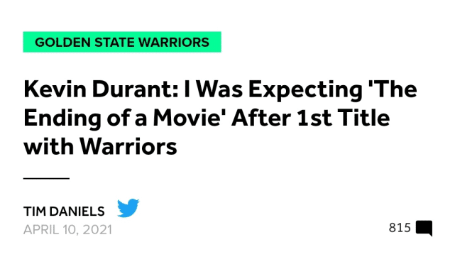“当我在勇士夺得第一座冠军后,我意识到我真正关心的是成长。就像是,我能变得多好?而不是让我们去夺冠。我欣赏冠军,我也想赢得冠军,但那不是我打球的最终目标。”他想成为伟大的球员,而非追逐人类创造的一些东西。