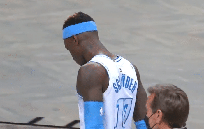 裁判看不下去,又是上前一人给了一个T,两人都短时间吃到两个技术犯规,都遭到了驱逐。欧文离场的时候脱掉球衣,并且直接扔向了看台上的球迷,显得非常愤怒。而施罗德也在工作人员的陪伴下离开球场,看起来施罗德也非常失落,看起来对自己的举动很懊恼。