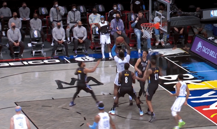 庄神上演名场面!1V5拼抢篮网全队,场边浓眉哥悉心指导