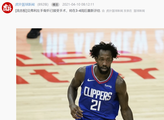 值得一提的是3-4周的时间并不是康复时间,而是评估时间,一般来说接受手术的骨折性伤病恢复周期都比较长,很可能需要按照月来进行计算!这样来看贝弗利很可能会常规赛报销,因为现在距离季后赛只有20场比赛左右的时间,这对于快船来说是沉重的打击!
