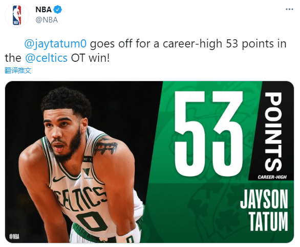 第三、塔图姆单场53分比肩伯德成队史近36年第二高得分,1985年伯德曾狂砍60分。
