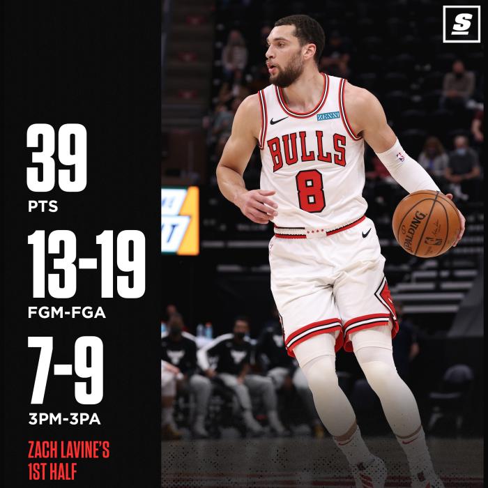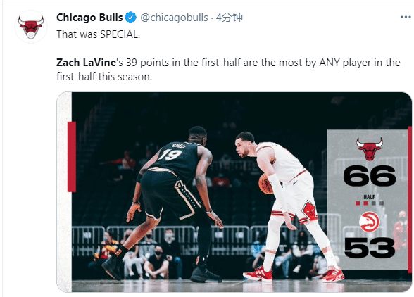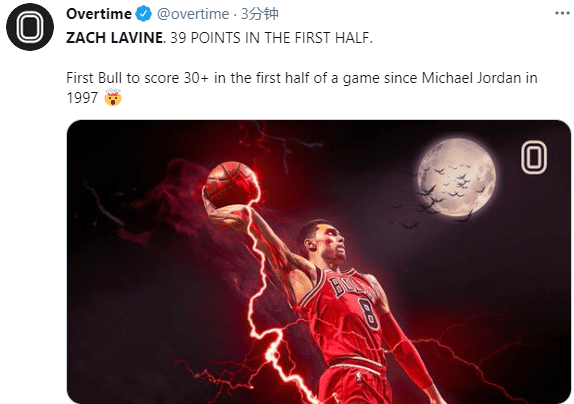 拉文半场39分钟,成为公牛队史1997年乔丹之后第一位半场30+的球员,比肩乔丹成队史近24年第一人。