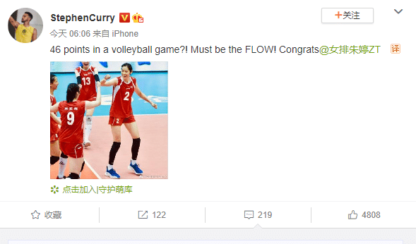 梦幻联动!朱婷单场46分刷爆纪录,NBA巨星斯蒂芬-库里祝贺