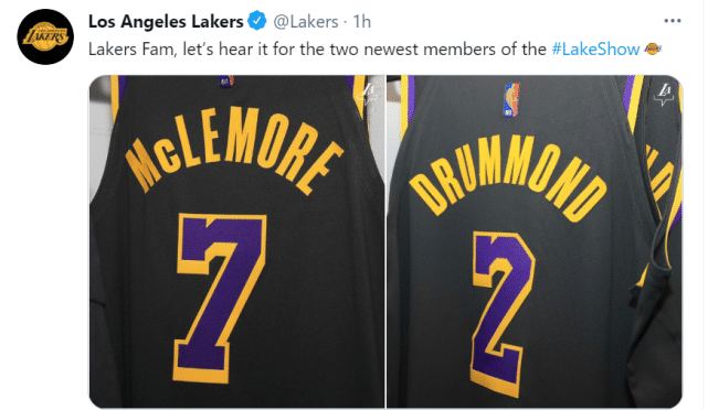 湖人新援麦克勒莫也将迎来首秀。此前湖人官网在刚签下他时,曾出现号码乌龙事件,在官方球员名单上标注麦克勒莫将穿16号球衣,由于16号属于湖人功臣大加索尔,一度引起热议,后来官网更正名单,麦克勒莫真正要穿的号码是7号。湖人官方也在赛前晒出了麦克勒莫和庄神的球衣号:7号和2号。