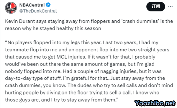 假摔者都避之则吉?杜兰特成功躲过伤病魔爪