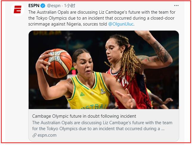 来源:24直播网07-16 18:4124直播网讯讯 京时间7月16日,据ESPN记者Olgun Uluc报道,澳大利亚教练组正在讨论是否将主力中锋坎佩奇驱逐出队,原因是她在近日一场对阵尼日利亚的封闭热身赛中发生了争执,同时,她在前段时间的队内封闭训练中,还违反球队纪律私自外出,这样的举动让球队上下非常不满,而澳大利亚教练组和篮协正在紧急商讨对于坎佩奇的处罚,最严重的结果,将会把她直接驱逐出队,不让她随队出征本届东京奥运会。