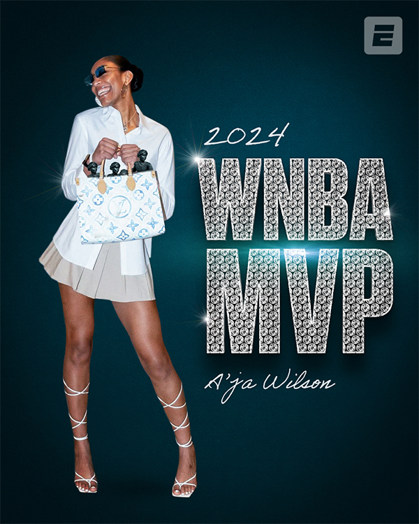 阿贾-威尔逊全票荣获MVP,湖人球星詹姆斯连续转发多张海报,祝贺她获此殊荣。
