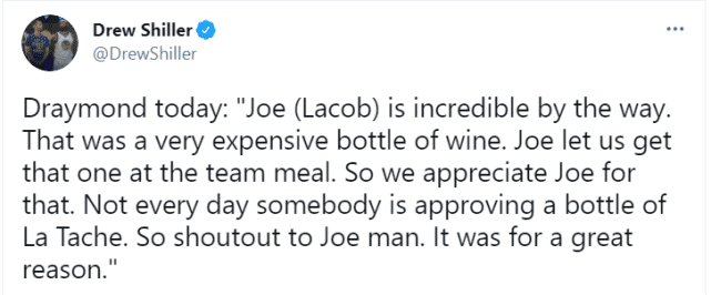 豪气!5万美元红酒并非库里买单 追梦:老板拉科布送给我们喝的