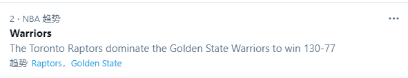 勇士单场狂输53分创本赛季最大输分,也是勇士队史第二大输分;勇士两节狂输51分,创造NBA历史单场连续两节最大输分,史上第一耻辱纪录;如此同时,猛龙赢球创造多项可喜的历史纪录,如此对比更突显勇士队的悲惨。