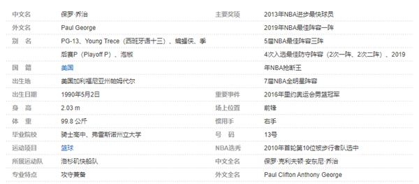 保罗-乔治(Paul George),全名保罗-克利夫顿-安东尼-乔治(Paul Clifton Anthony George),1990年5月2日出生于美国加利福尼亚州帕姆代尔,美国职业篮球运动员,司职前锋,效力于NBA洛杉矶快船队。保罗-乔治于2010年通过选秀进入NBA,先后效力于步行者队、雷霆队以及快船队。