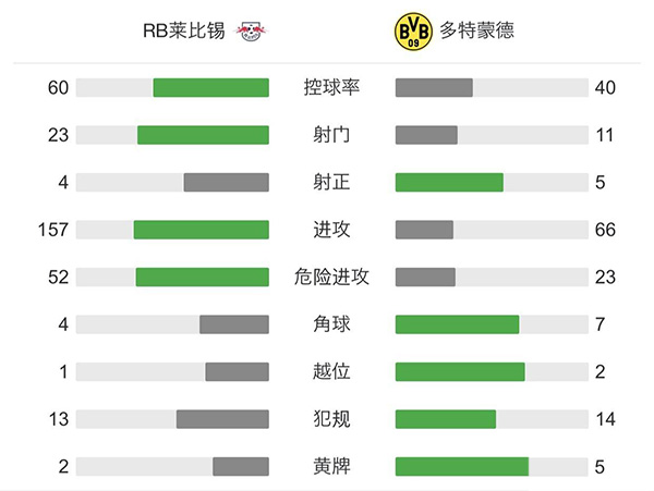 第5分钟,多特率先取得进球!罗伊斯断球发起反击,哈兰德、贝林厄姆连续传递,桑乔禁区前沿左侧得球突入禁区,右脚爆射破门,莱比锡0-1多特。