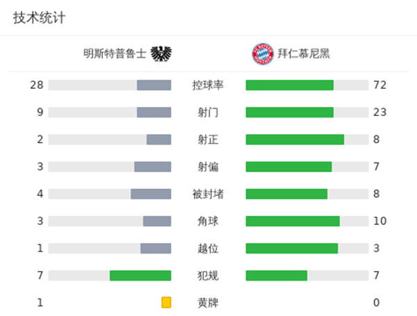 第9分钟,特尔左路底线附近传到禁区后点,舒波-莫廷跟进低射破门!拜仁慕尼黑1-0普鲁士明斯特↓
