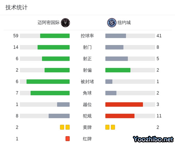 迈阿密100分钟绝平2-2纽约城 梅西助攻双响+赛后染黄