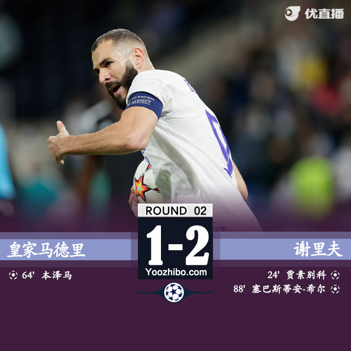 24直播网9月29日讯 北京时间09月29日星期三03:00,欧冠小组赛D组第2轮皇家马德里主场对阵谢里夫。上半场,皇马狂攻无果,亚赫斯巴耶夫破门,皇马半场0-1落后谢里夫。下半场,维尼修斯造点,本泽马点射,蒂尔绝杀。最终,皇马主场爆冷1-2遭谢里夫绝杀。