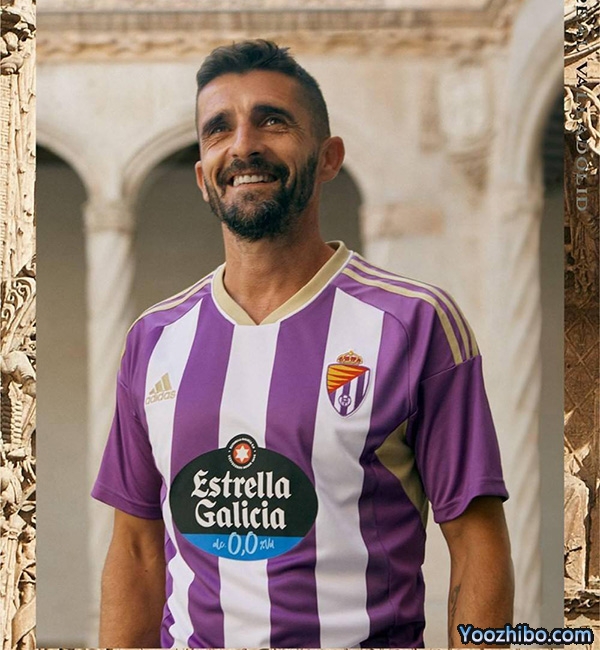 巴拉多利德新赛季主场球衣延续俱乐部的传统设计,衣领、肩膀上的阿迪达斯胜利三条纹以及胸前刺绣的adidas Logo均以耀眼的金色呈现。