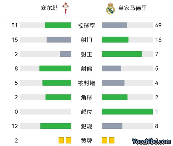 全场比赛结束,巴尔韦德右路斜传阿森西奥左路皇马客场4-1塞尔塔。