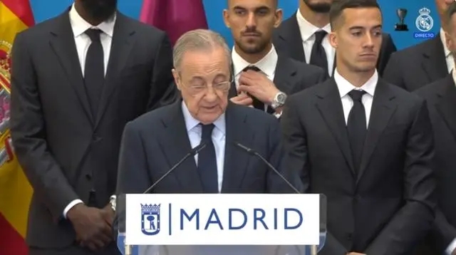 弗洛伦蒂诺表示:“很荣幸回到市政厅,尊敬的市长,非常感谢您的接待。这是一个非常艰难的联赛,而且我们还遇到了长期伤病。这个冠军提升了皇马的传奇色彩,球员们和安切洛蒂再次做到了这一点,并证明了没有什么是不可能的,他们挺过了困难,并且付出了一切才来到这里。”