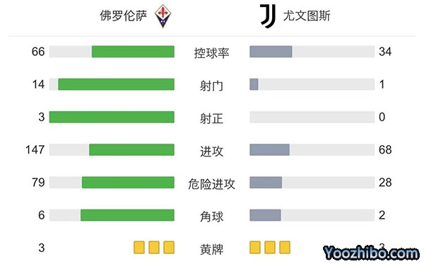 全场比赛结束,佛罗伦萨2-0尤文图斯!