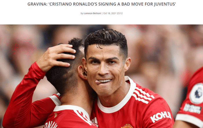 24直播网讯10月19日讯 足协主席格拉维纳最近接受了足球市场网采访,他表示签下C罗对尤文来说不是一笔好交易。