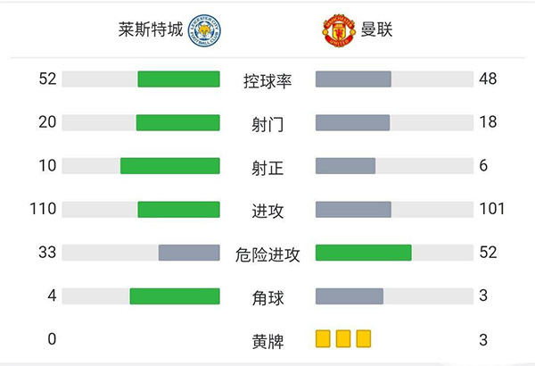 最终全场比赛结束,莱斯特城4-2曼联!