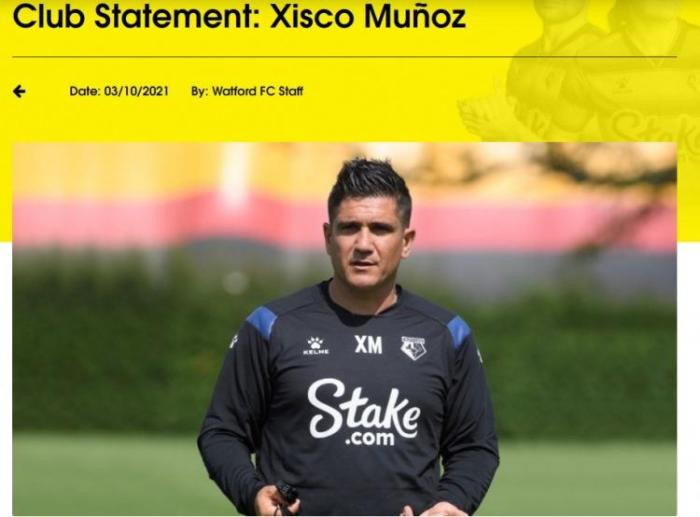24直播网讯10月04日讯 今日,沃特福德官方宣布,主帅西斯科-穆尼奥斯下课,据悉,这是本赛季英超第一位下课的主帅。