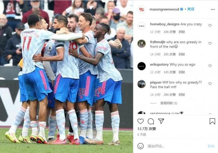 球迷在其INS状态下留言:“你疯了吗?”“你在门前为什么如此贪婪?”“你为什么如此自大?”“搞什么啊,伙计,传球啊!”